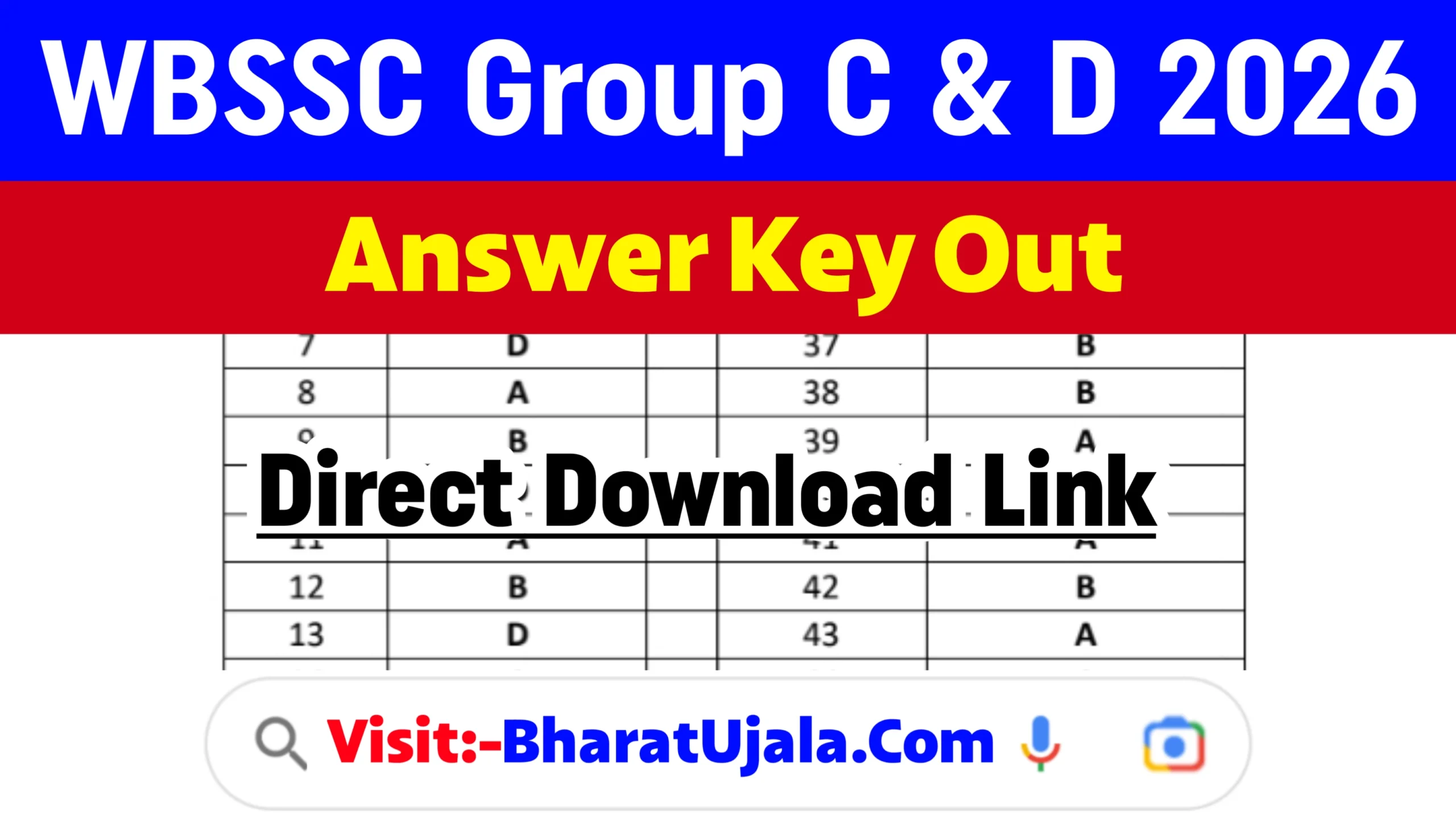 WBSSC Group C & D Answer Key 2026:- The West Bengal School Service Commission (WBSSC) the body which is responsible for conduction of West Bengal Group C and D Test is all set to conduct the examination on 01st March to 8th March 2026.Total Vacancies are 8478 WBSSC Answer key 2026 soon Answer Key Release Date not Out will be high chances release next month but last year exam time 1/2 months release wait any new information reach you join us WhatsApp channel और teligram channel